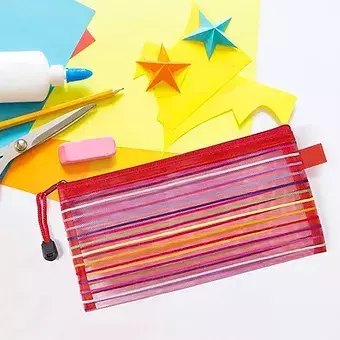 Necessaire produzida em nylon listrada, com acabamento transparente. Contém 1 compartimento com fechamento em zíper. Compacta, e perfeita para carregar dentro da bolsa.